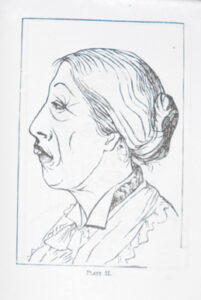 <ブログ> 口呼吸 2025.09.13 写真はアメリカの耳鼻科の先生が書いた「慢性口呼吸」(1881年)のテキストのさし絵です。 50歳過ぎの女性で、慢性的な鼻づまりを持つ特徴的なお顔をしていると説明しています。 140年以上前に、アメリカの一部のドクターは関心を持っていたのですね。